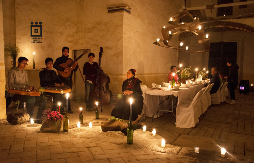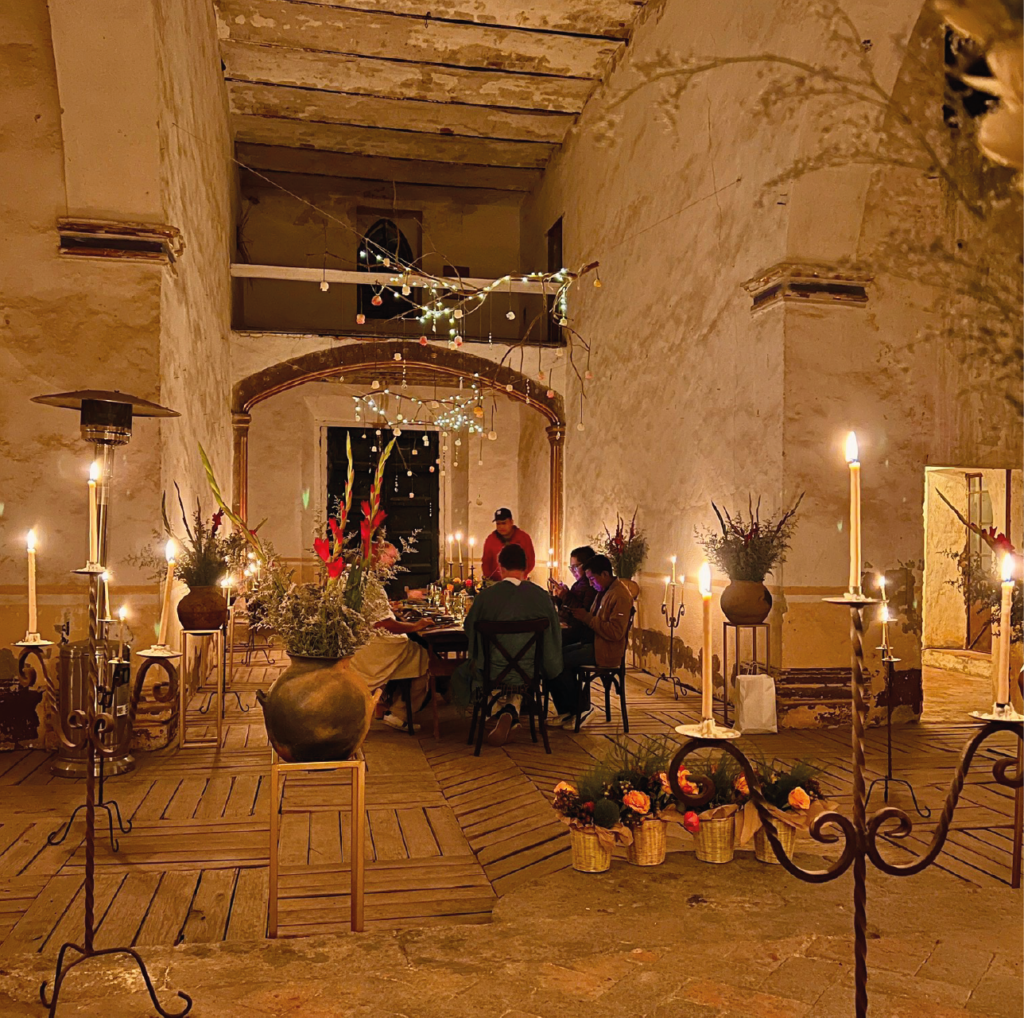 La experiencia se acompaña de una cena preparada con ingredientes orgánicos de la región, elaborados con el toque casero de nuestras cocineras tradicionales. Cada platillo celebra los sabores locales en un entorno histórico que invita a disfrutar con calma, rodeado de arquitectura colonial, arte y luz tenue.